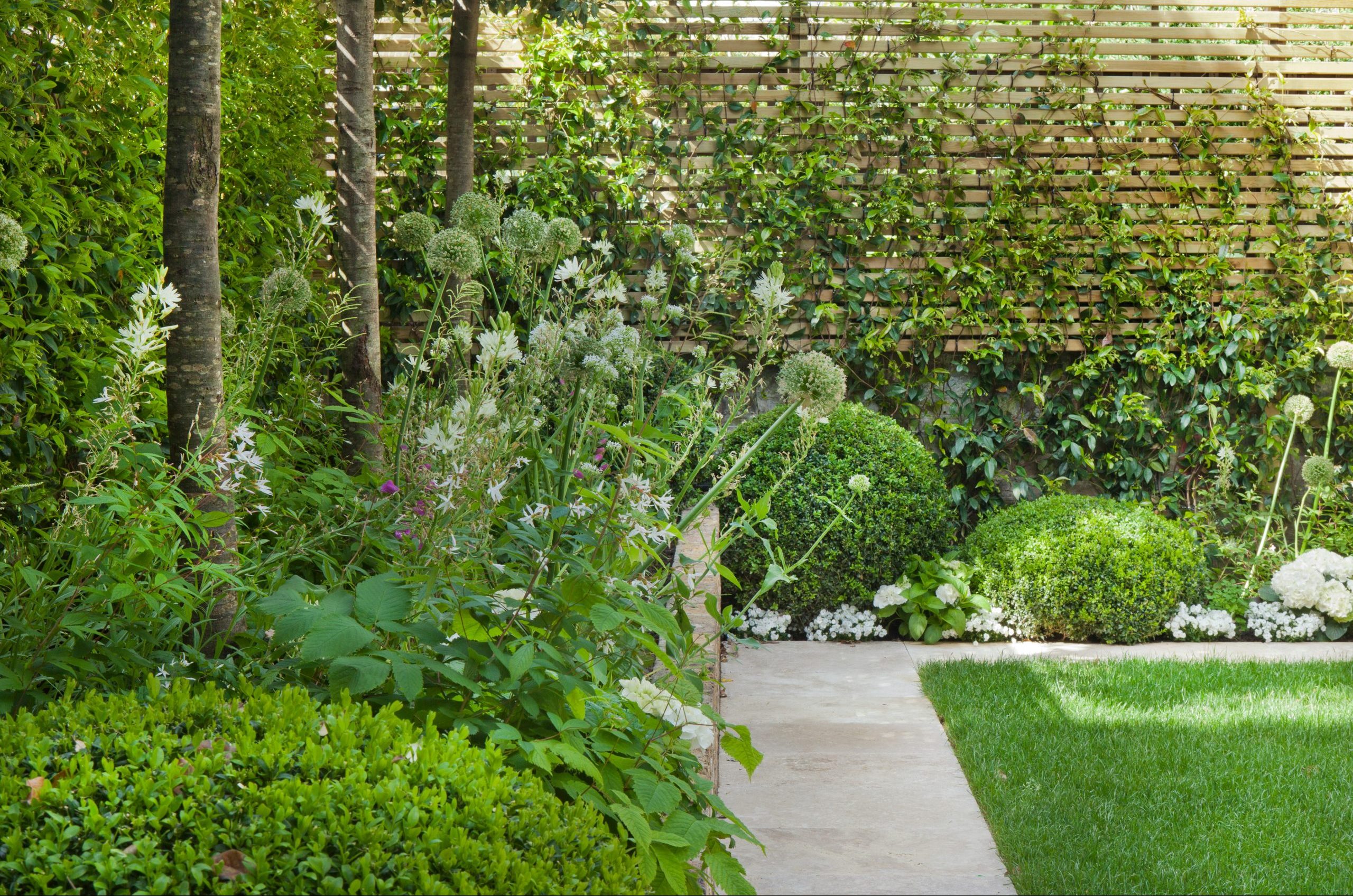 By leaving a gap between the horizontals of the fence around this urban garden, we created the perfect climbing frame for the jasmine that fills the air with scent in summer.