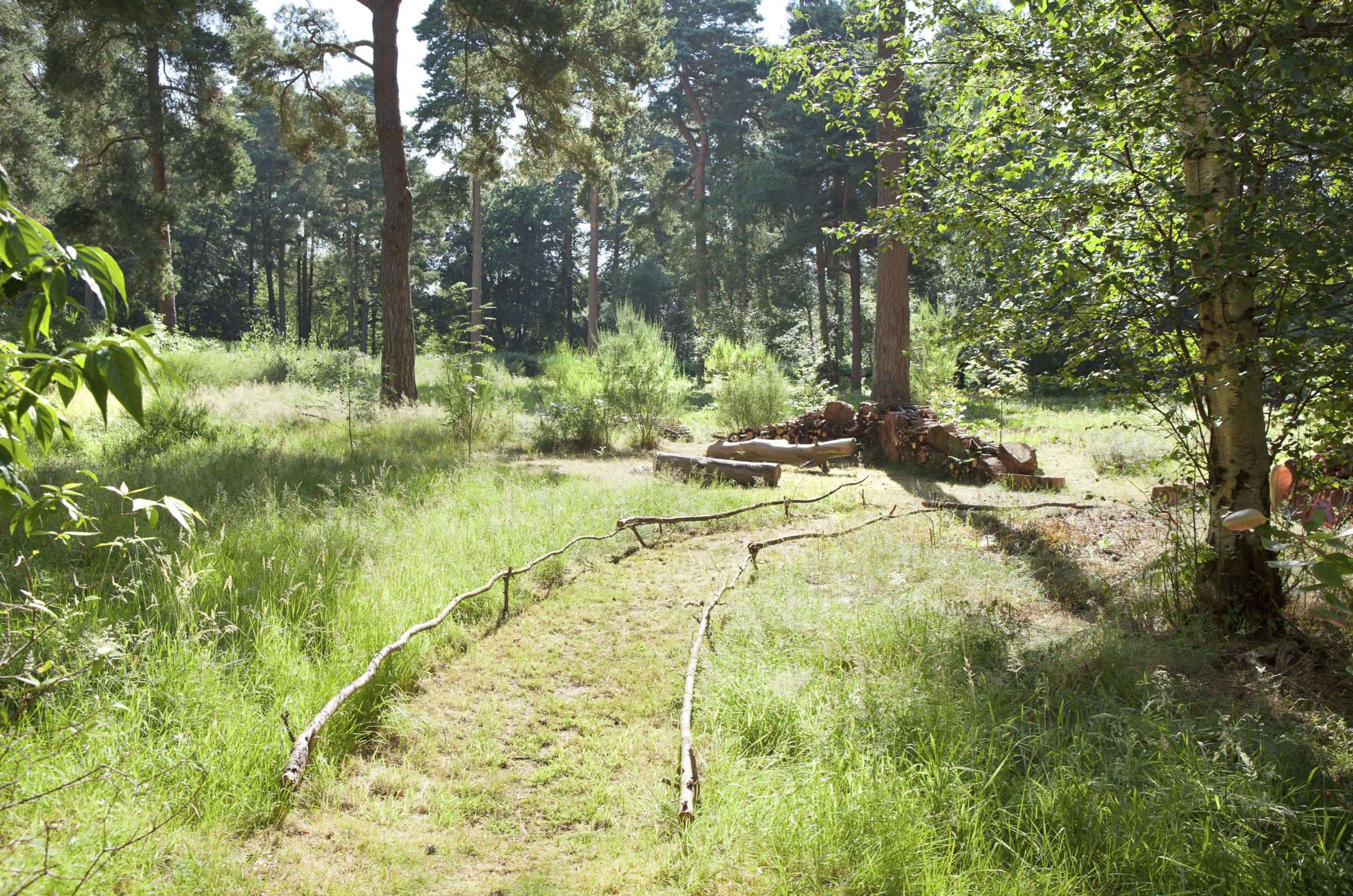 Sometimes the simplest things can be profoundly effective and astonishingly beautiful. In one such instance, ordinary branches have been used to craft a low fence, delicately demarcating the edge of a mown path within the garden. The approach to use everyday garden materials in a way that is considered and designed adds a layer of detail and interest to the landscape.