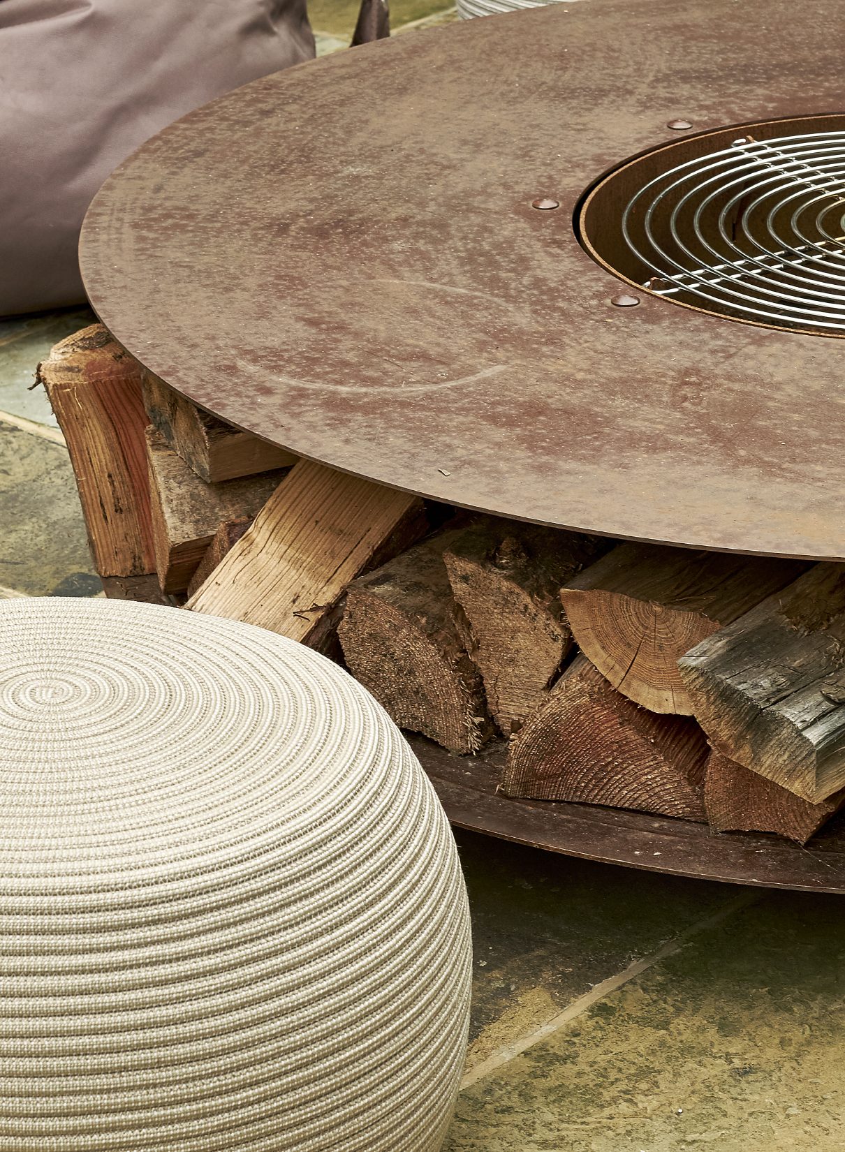 This ready-made firepit comes from Ak47 Design, an Italian company specialising in firepits and cutting edge design. Thanks to the stainless steel grill, the firepit can also be used as a barbecue.