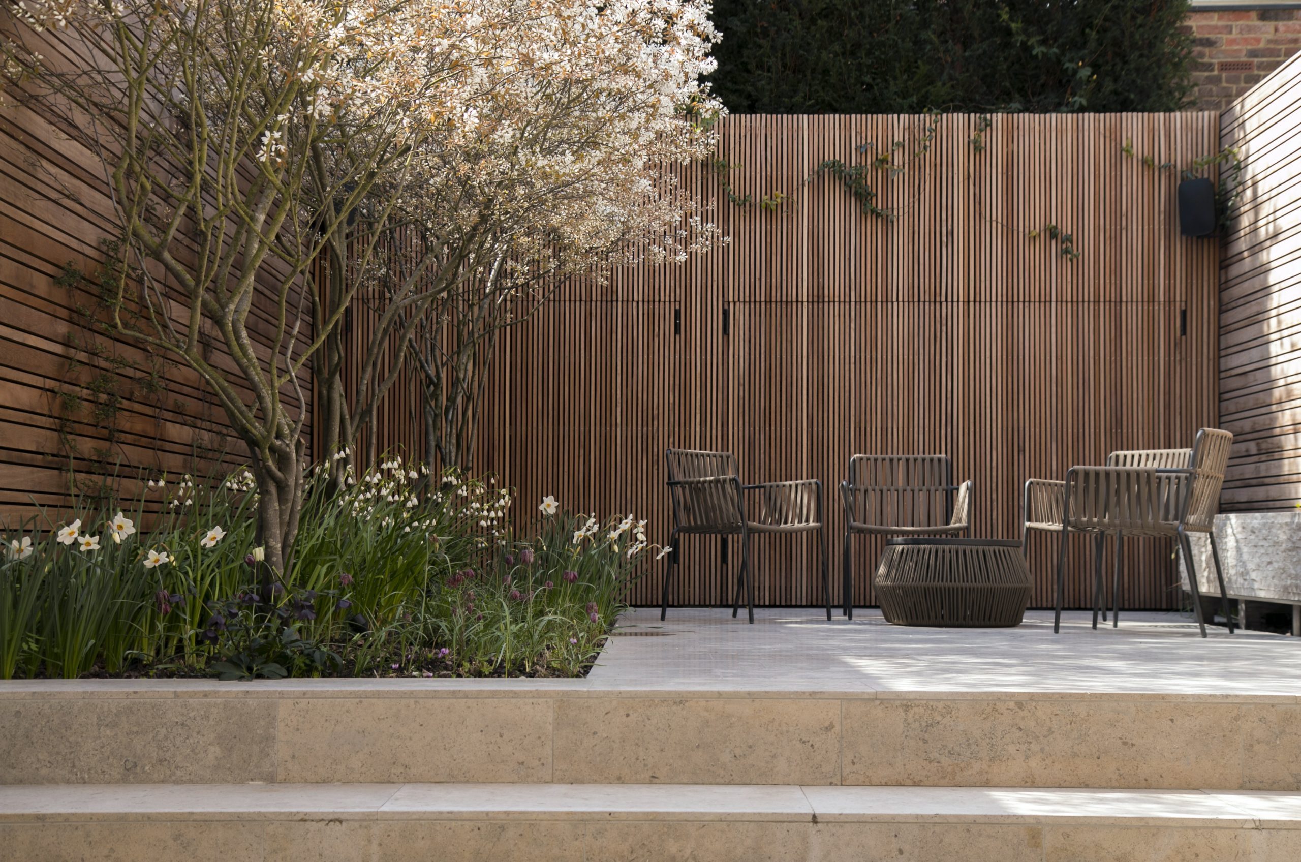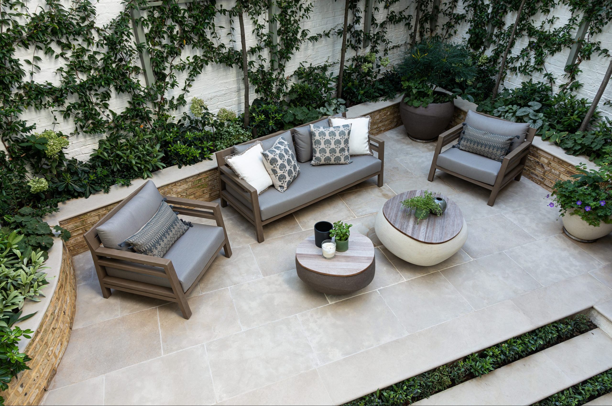 A company called London Stone supplied the beautiful limestone paving slabs we used to create this wonderfully elegant and intimate space behind a Grade ll listed house in South Kensington.