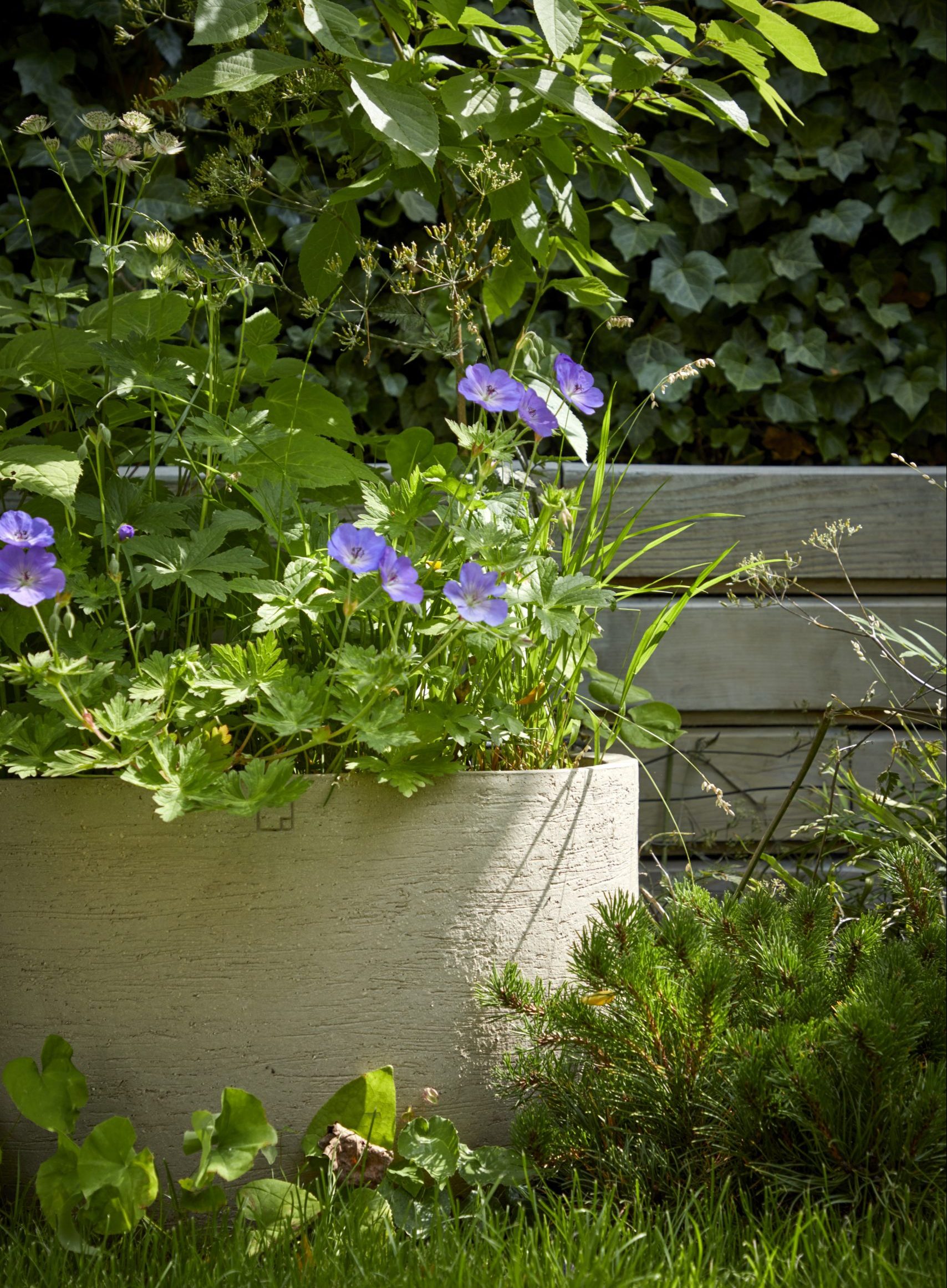 The height of these unusual pots made by Atelier Vierkant allowed us to add another layer to the planting, without disturbing the simple elegance and serenity of this small garden.