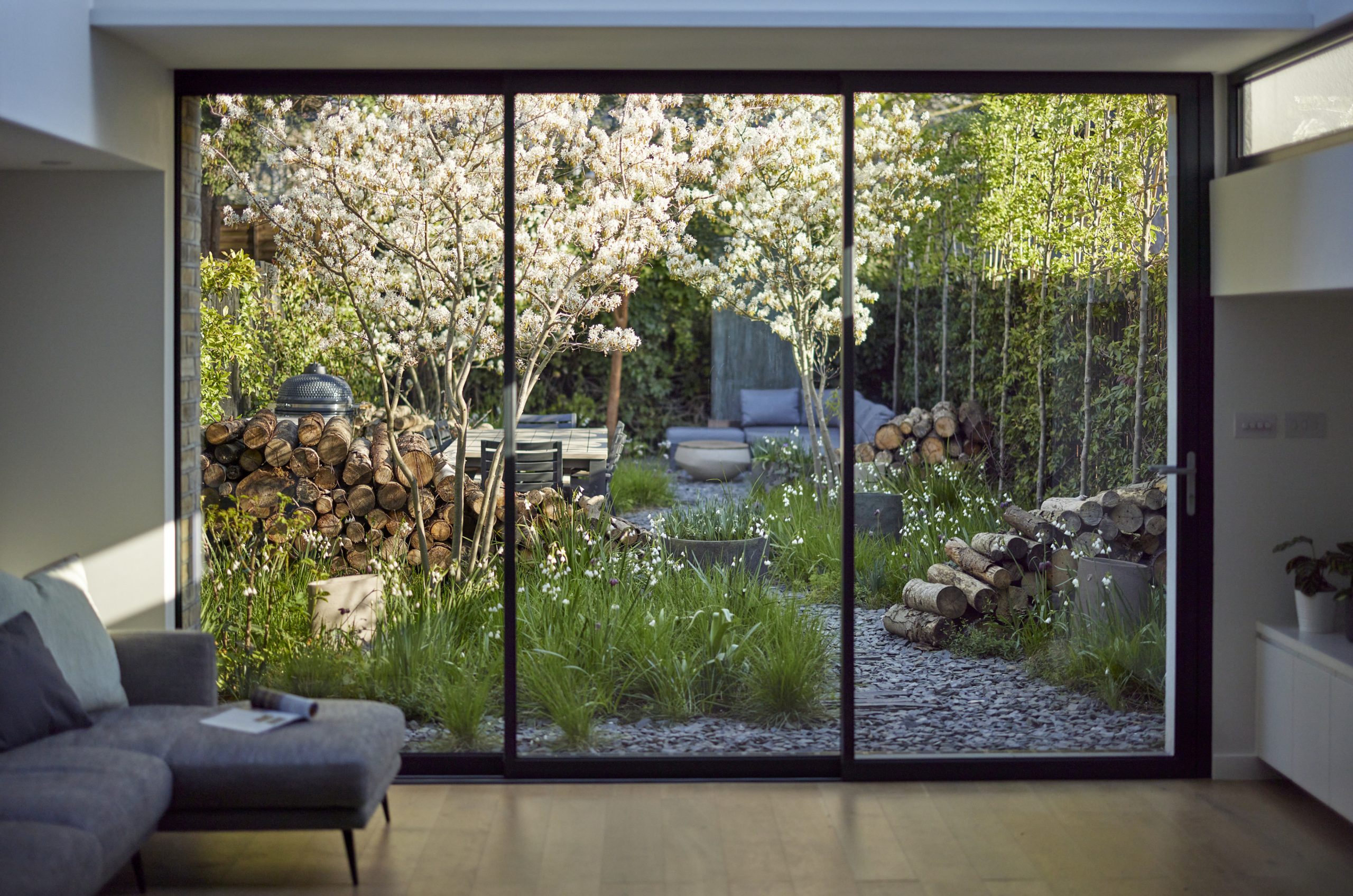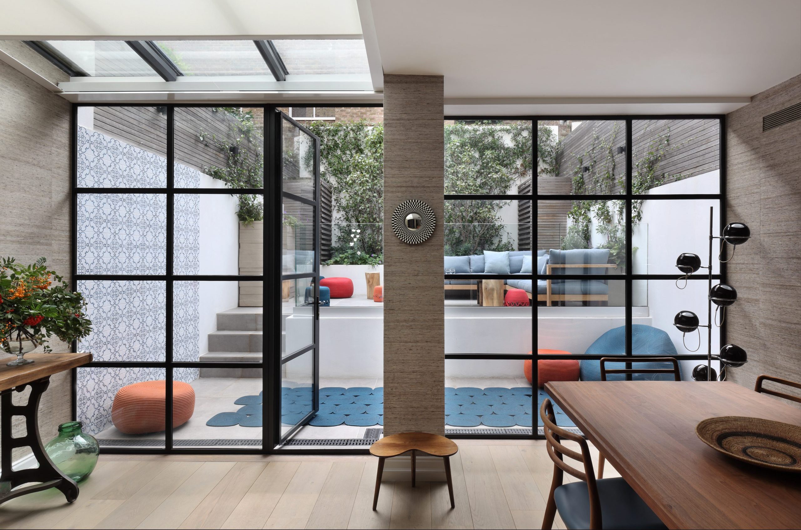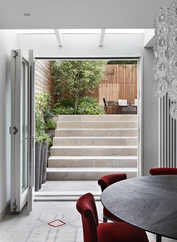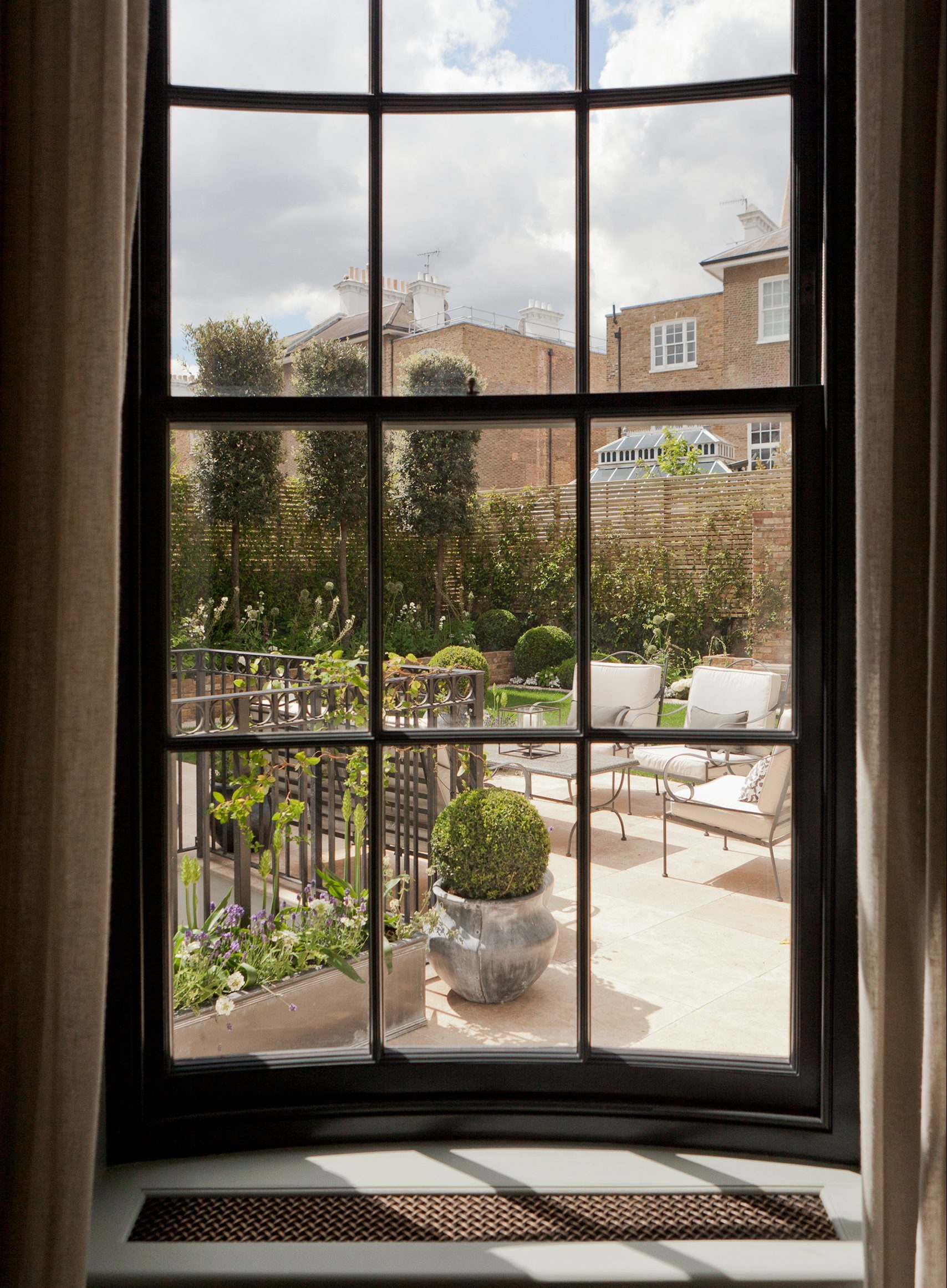 The view through the basement is interrupted only by the narrow glazing bars of the window, so that the garden has become an almost seamless extension of the house. By creating this bond between house and garden we made the limited outdoor space feel very much larger.