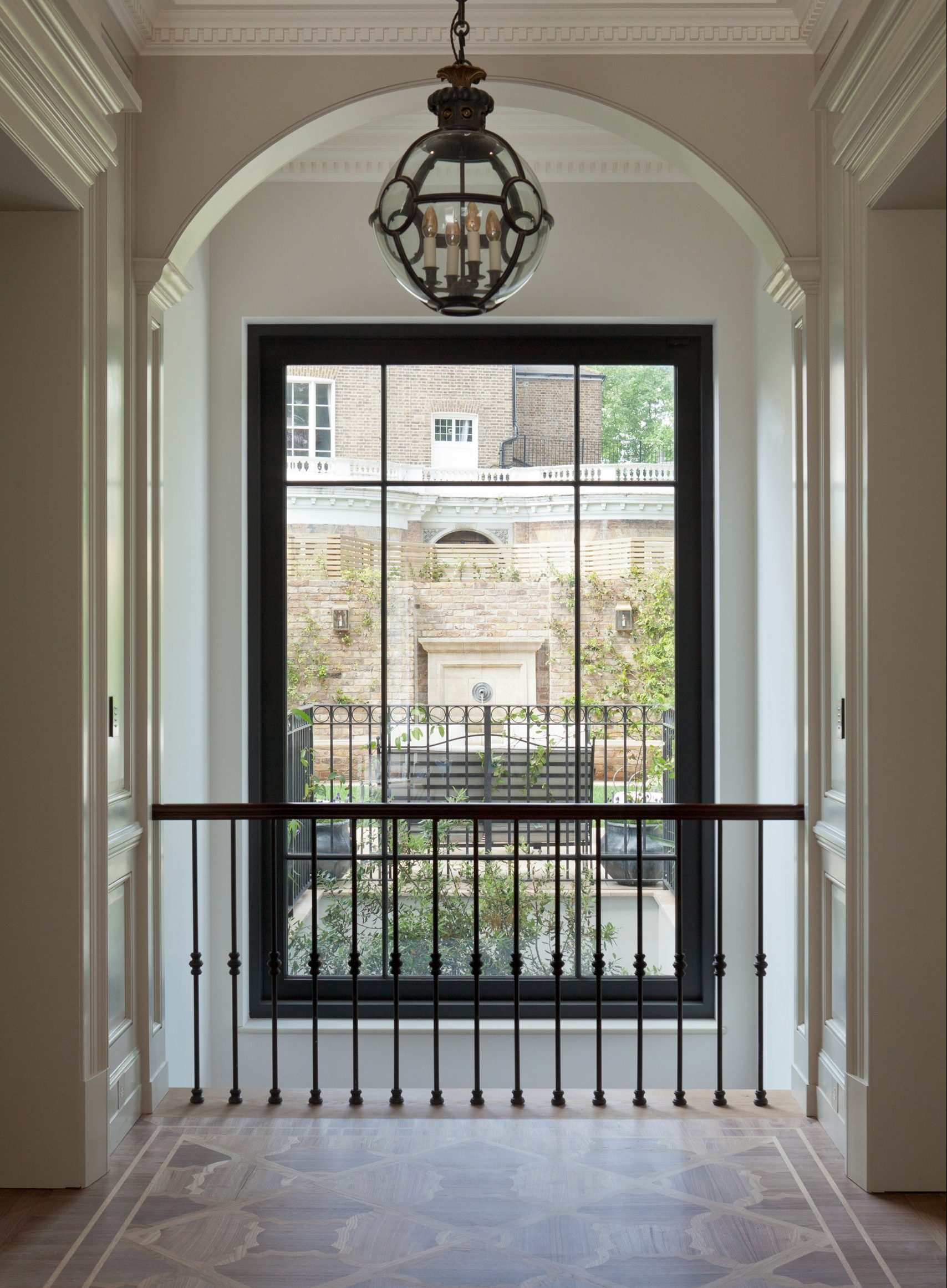 Seen through the doors of the basement, an enfilade of elegant pots create another eyecatcher, and draw the eye towards the steps.