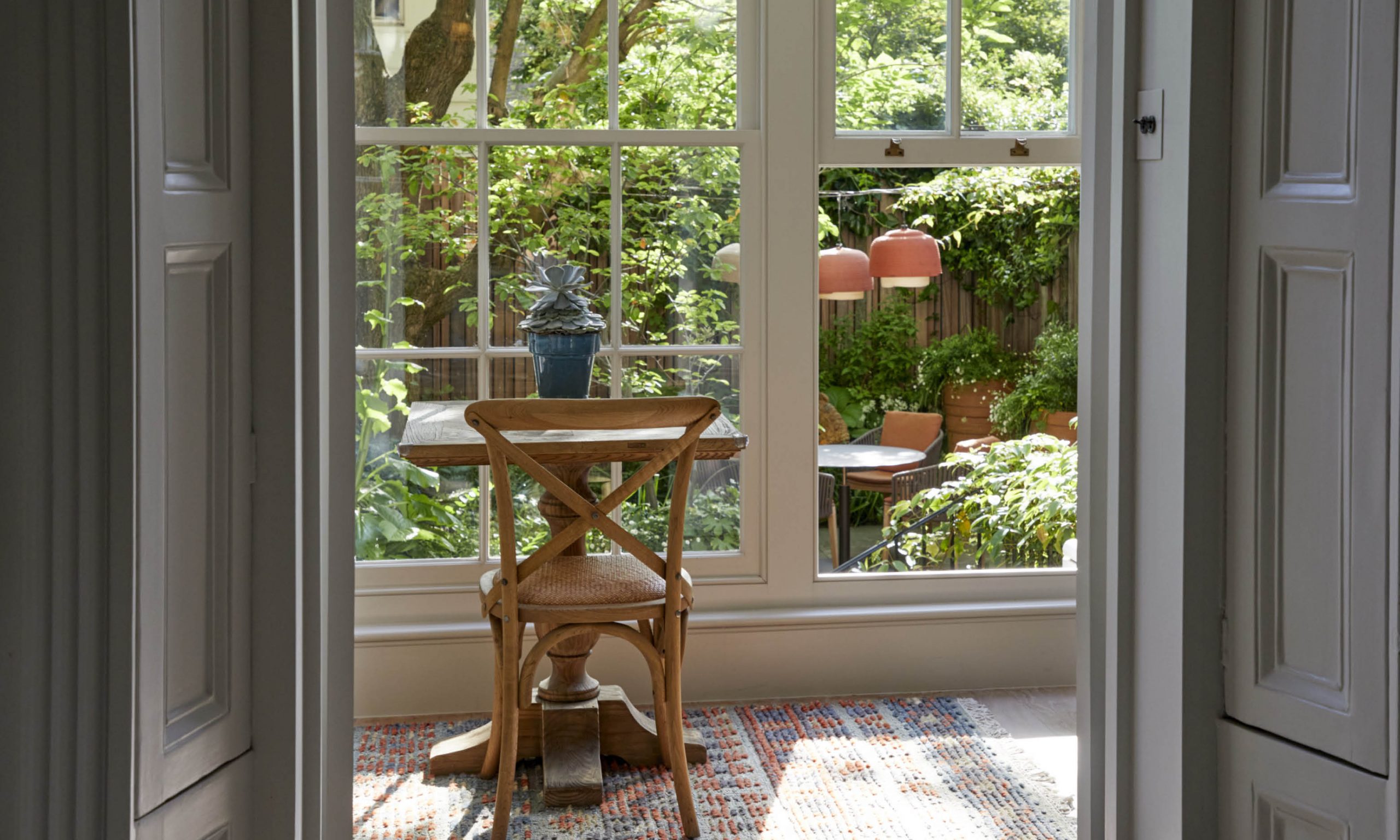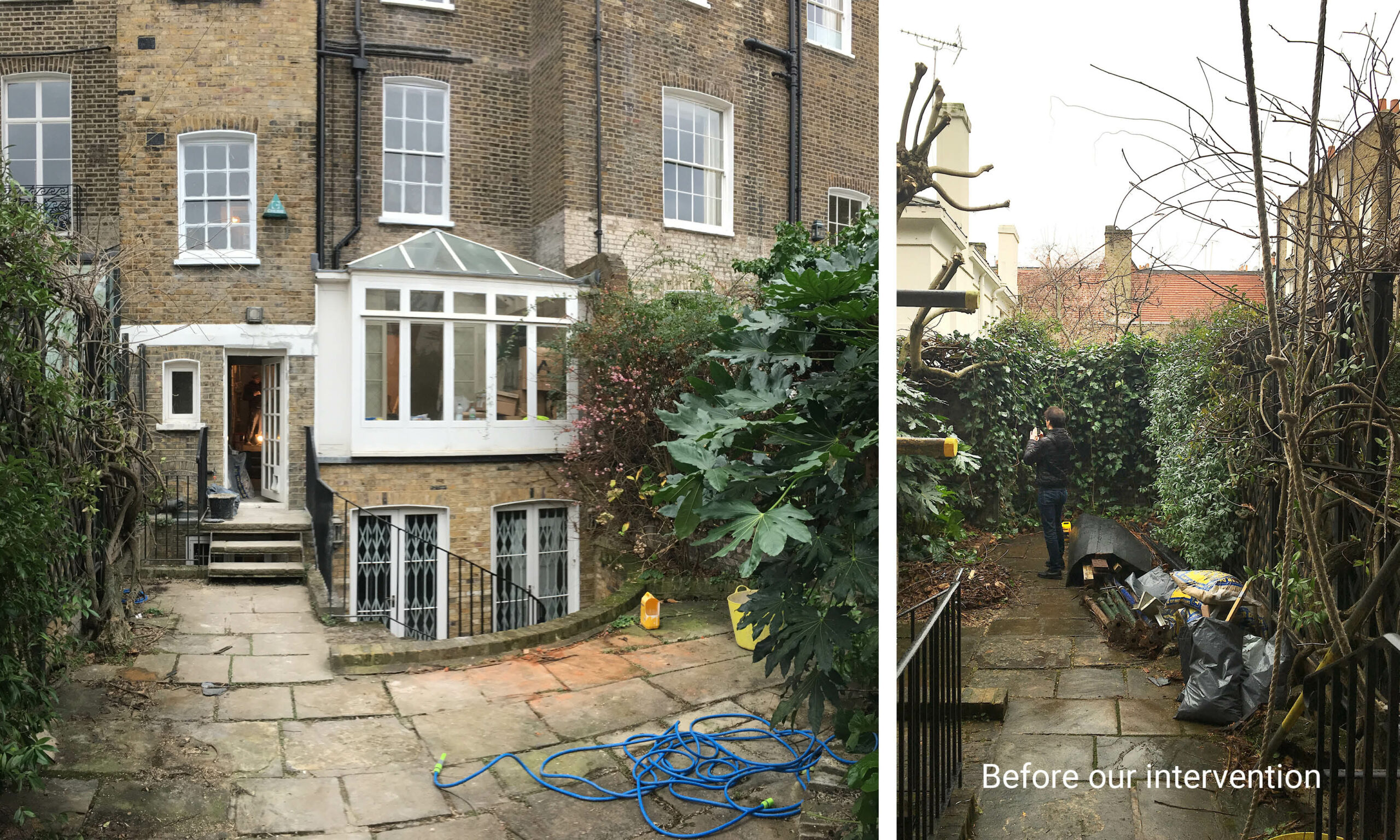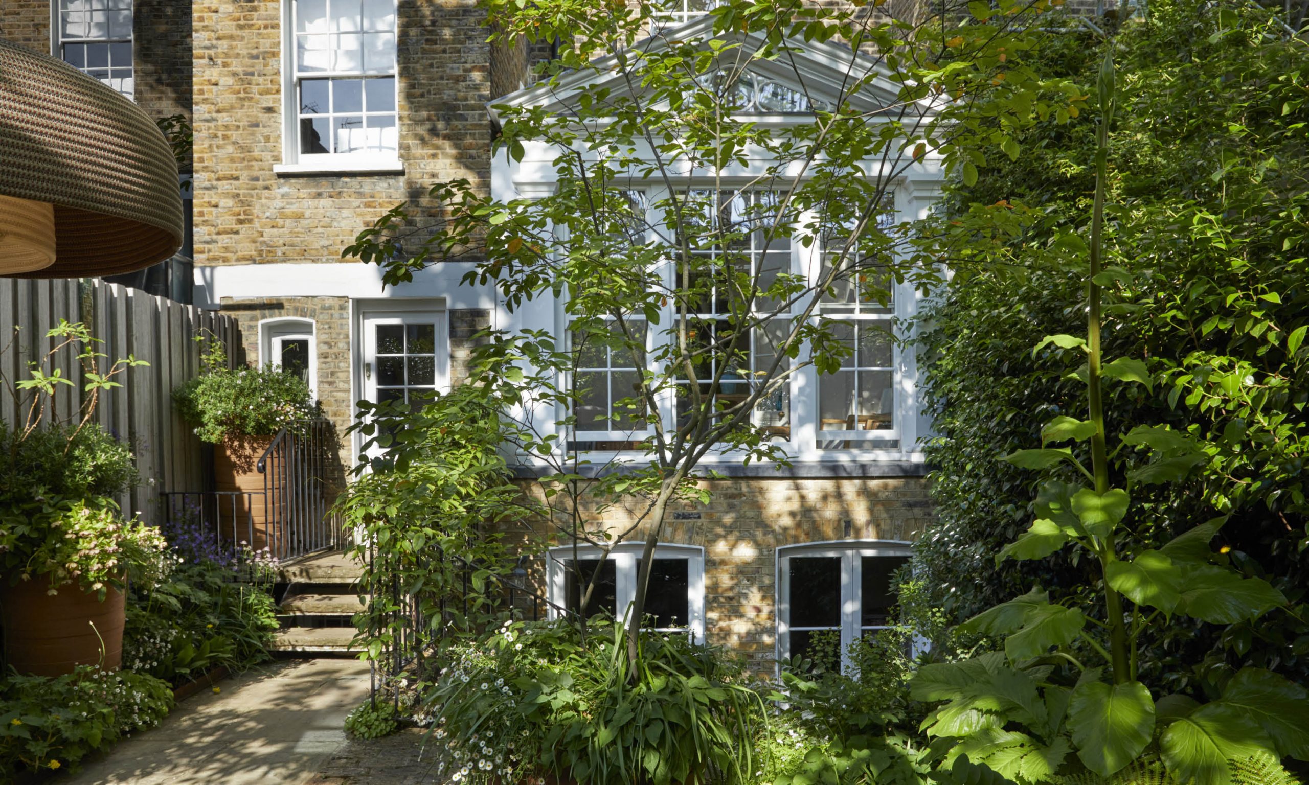 This garden is on two levels that correspond with the ground floor and basement of a Grade ll listed building currently under renovation by Smallwood Architects. We will enclose the ground floor on two sides with a slatted iroko fence, using verticals of different widths and depths to avoid monotony and add drama to the garden boundary.