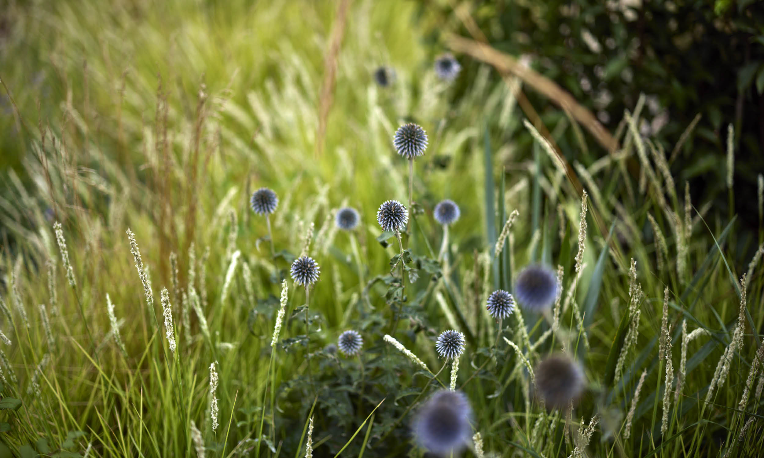 The protagonists of the Summer peak are grasses like the Sesleria autumnalis, Stipa ichu and Calamagrostis acutiflora ‘Karl Foester’ alongside perennials like Sedum ‘José Aubergine’, Agastache ‘Blue fortune’ and Sanguisorba canadensis.