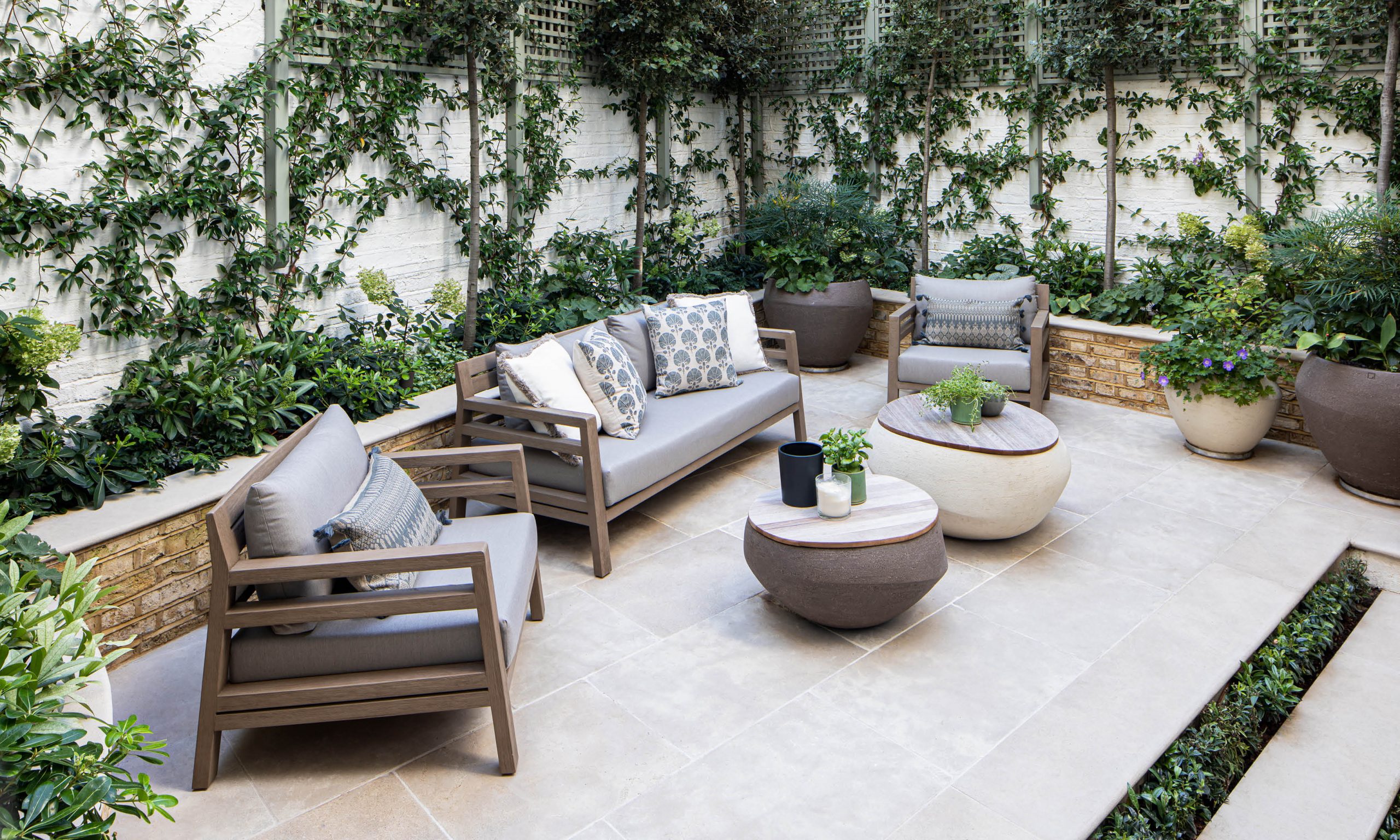 With its weathered paving and stone-edged beds, the space already displayed the old-fashioned formality you might expect in the garden of a Grade II* listed building. The house has been fully renovated, however, and we have brought the same fresh thinking to its garden. Now dense sarcococcahedges surround a mono planting of Hydrangea paniculata ‘Lime green’, so that the garden seems submerged by a profusion of cool, green flowers in late summer.