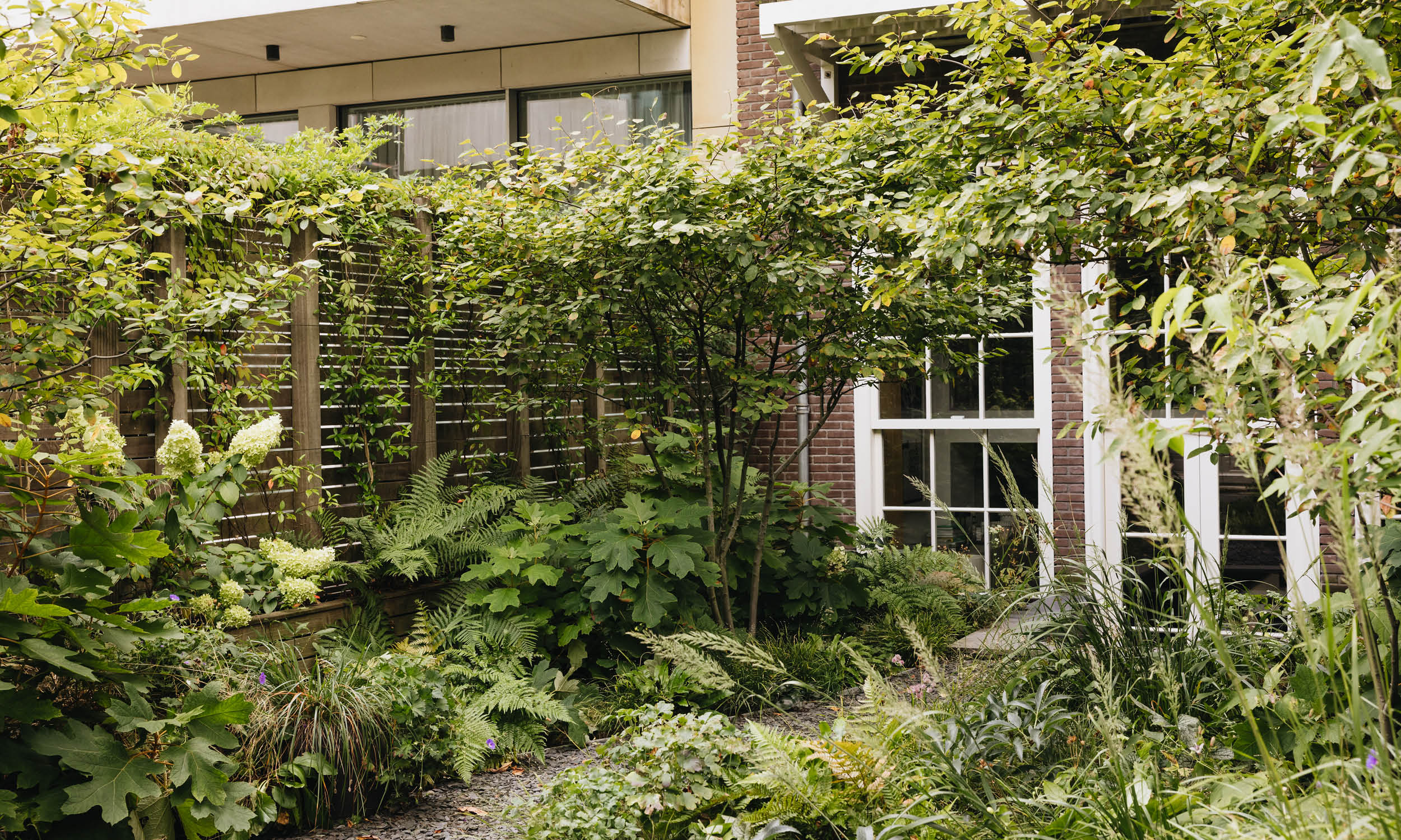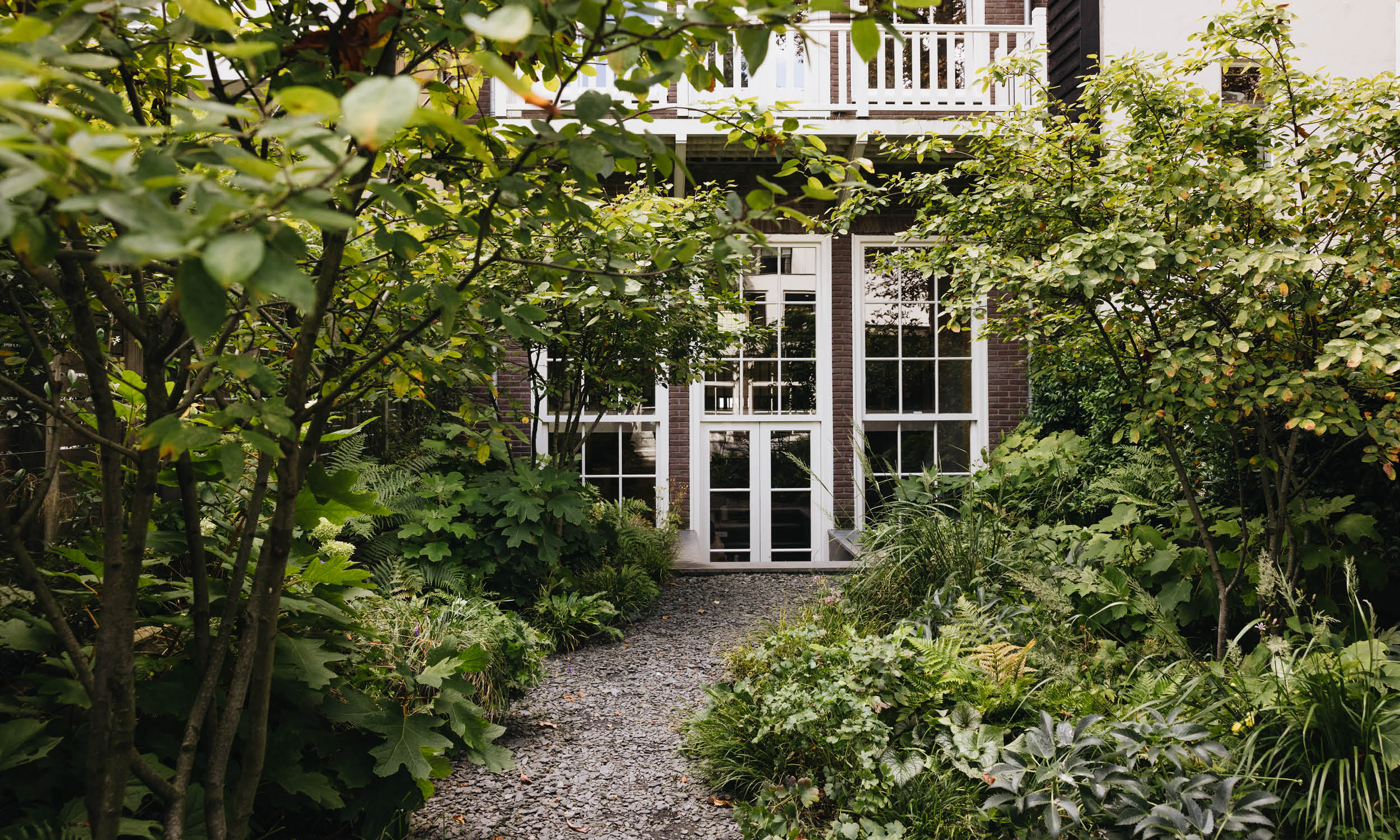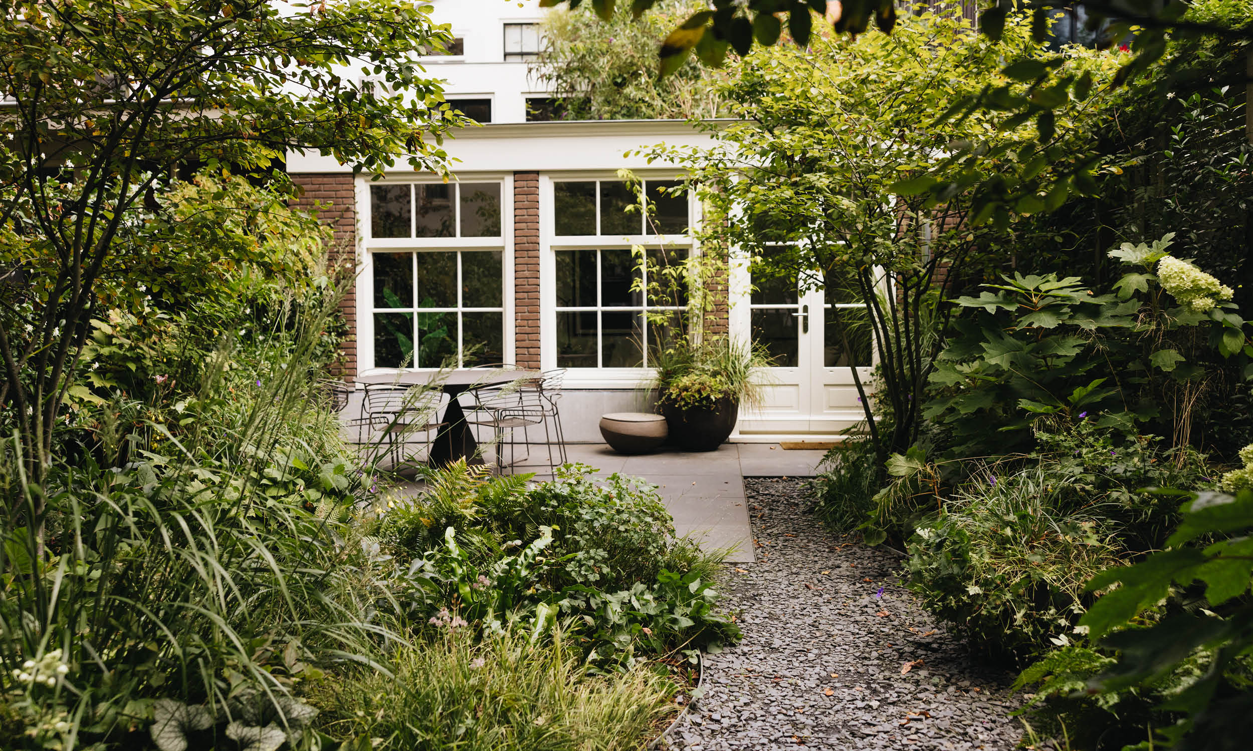 Nestled in the elegant and historic Prinsengracht in the heart of Amsterdam, this garden was designed to create a peaceful retreat, featuring a meandering path that winds between lush planting beds and leads to a tranquil terrace at the rear. The terrace offers a perfect spot for outdoor dining or working, a refreshing way to support mental well-being by staying connected to nature.