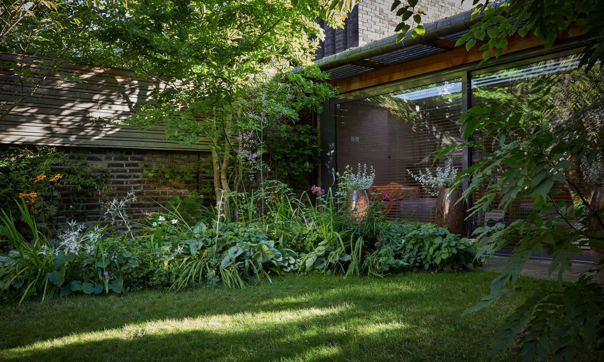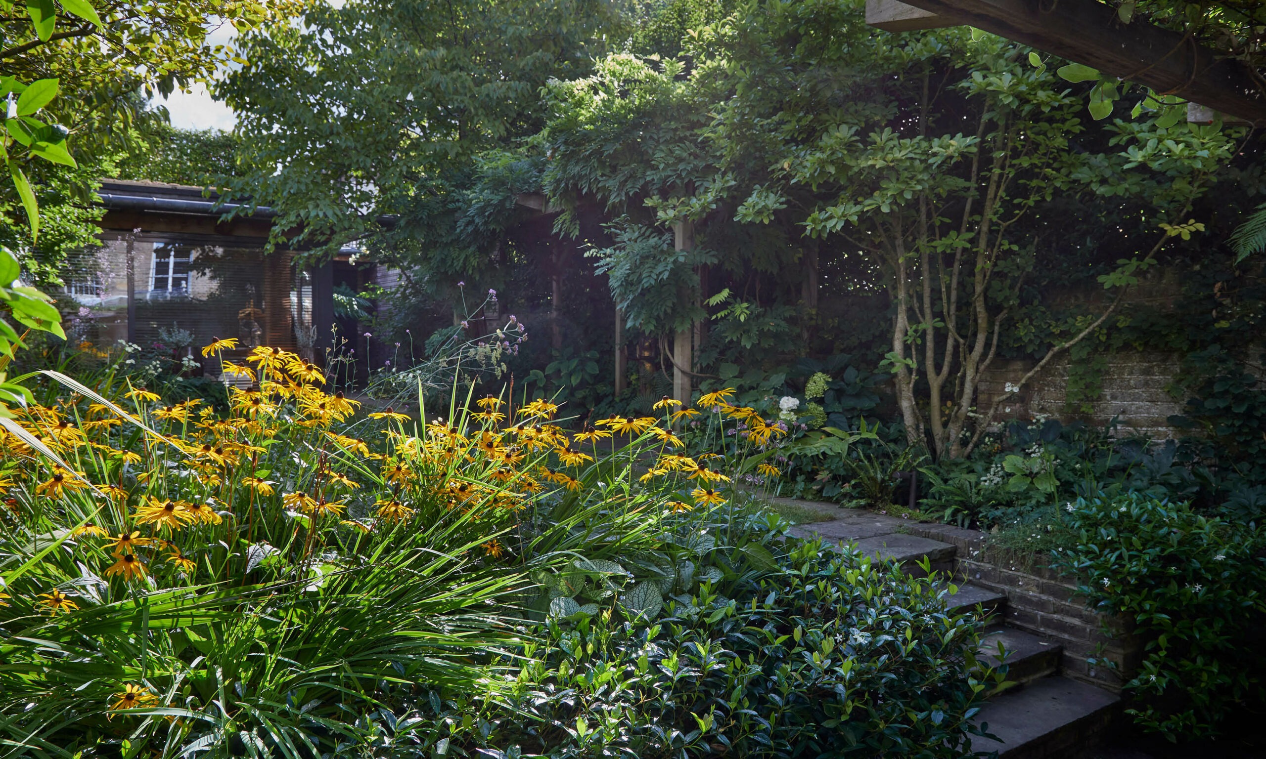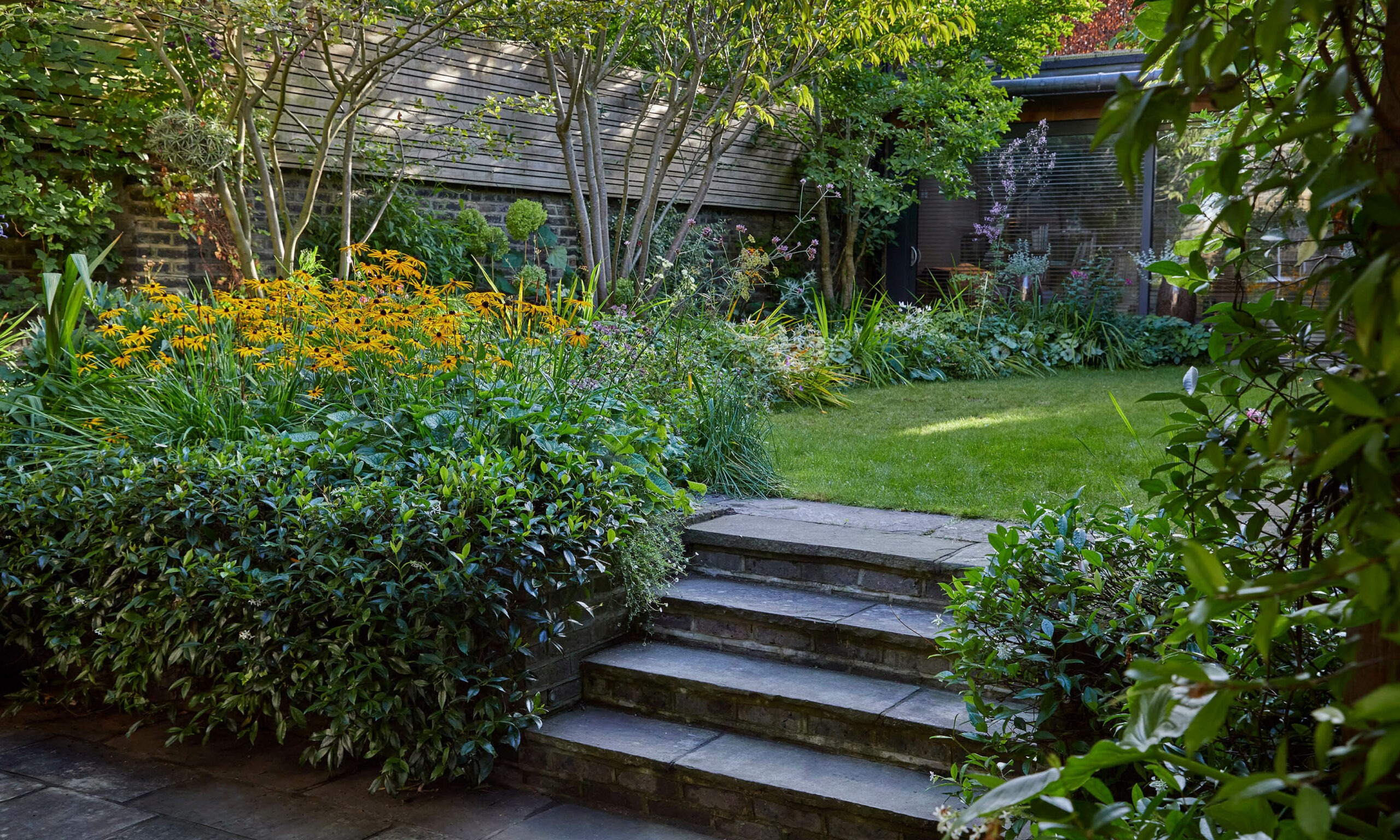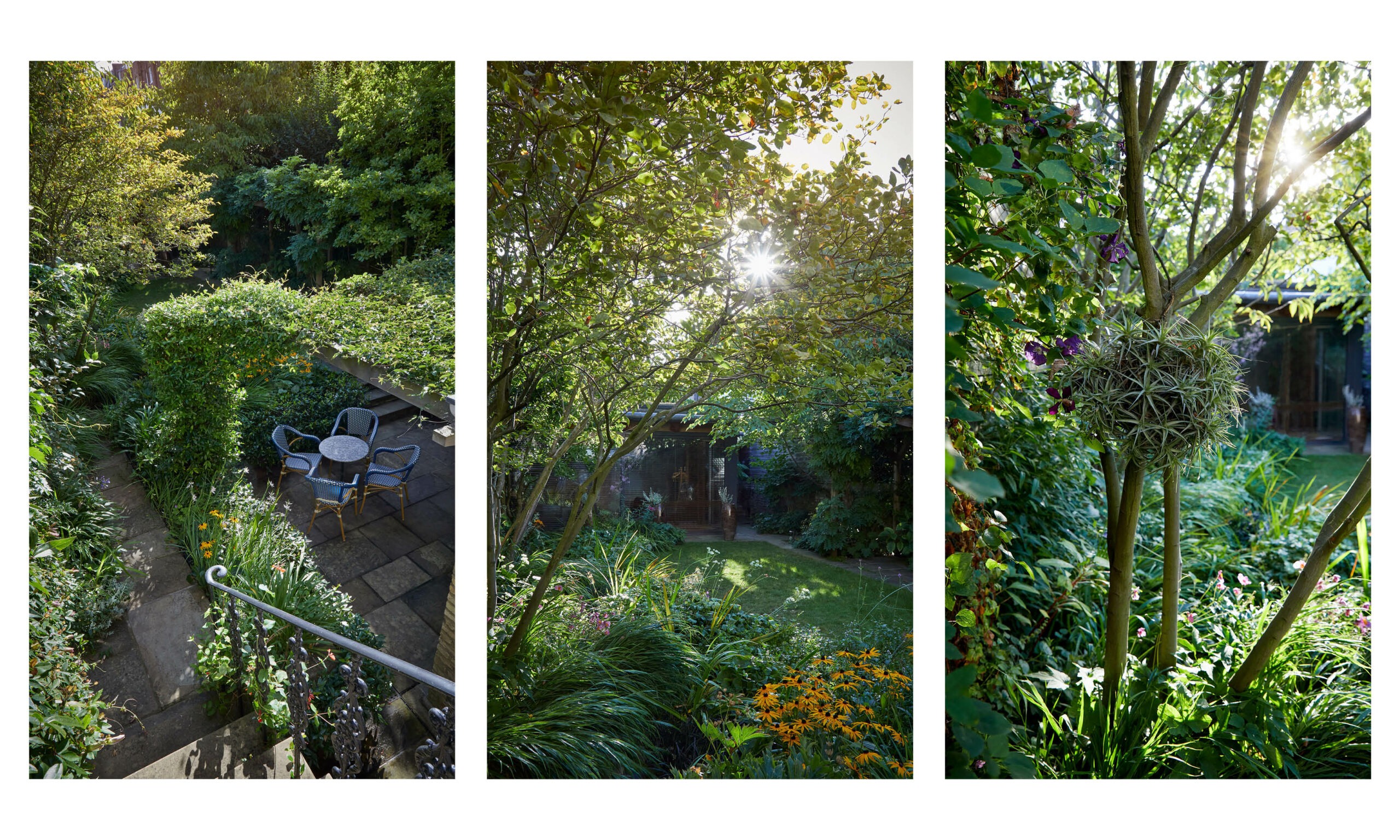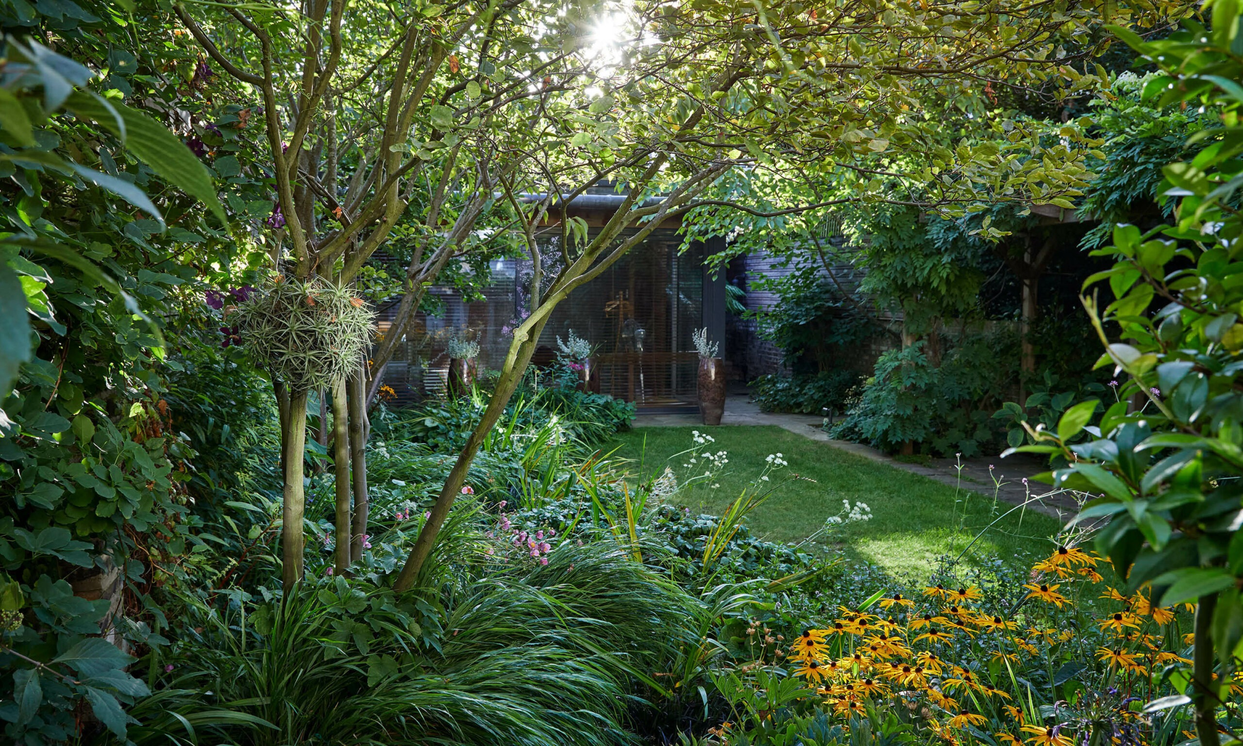 It is always a pleasure to watch one of our garden designs growing into its full potential. We planted this east-facing garden in central London eight years ago, and today it has the serene atmosphere of a mature country garden in the middle of the city. The ornamental cherry, Amelanchier, magnolias and handkerchief tree (Davidia involucrata), all chosen for their gorgeous spring flowers, are now sturdy shrubs and trees. The lawn at their feet brings a sense of generosity and space to the garden, while the beds that hem it in are packed with a wonderful medley of perennial plants, carefully selected to bring colour and scent to every corner of the garden, year after year. The studio at the garden’s far end soaks up the sun, but closer to the house there is a shady pergola, now enveloped by our romantic mix of passion flower, scented honeysuckle and wisteria. Loving them as we do, it is a delight to see our carefully selected plants thriving and continuing to bring pleasure to their owners.