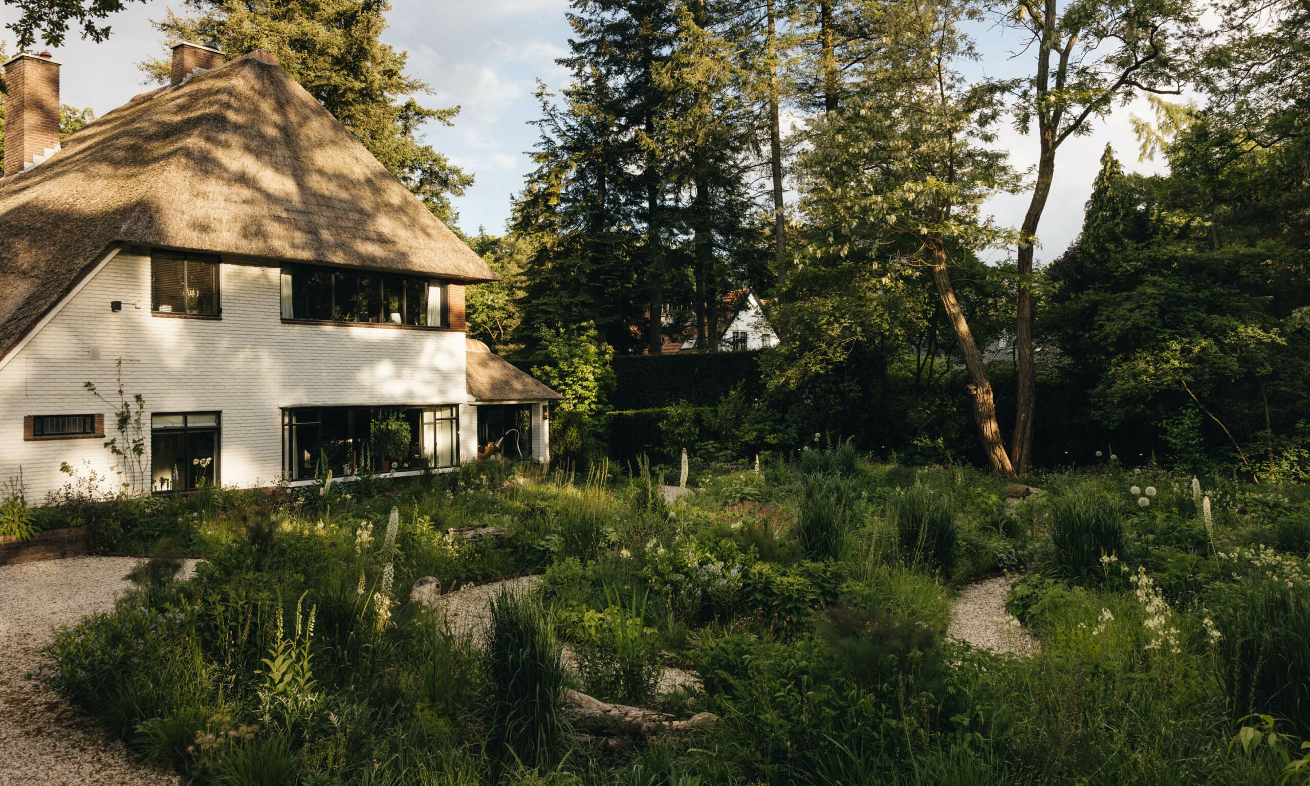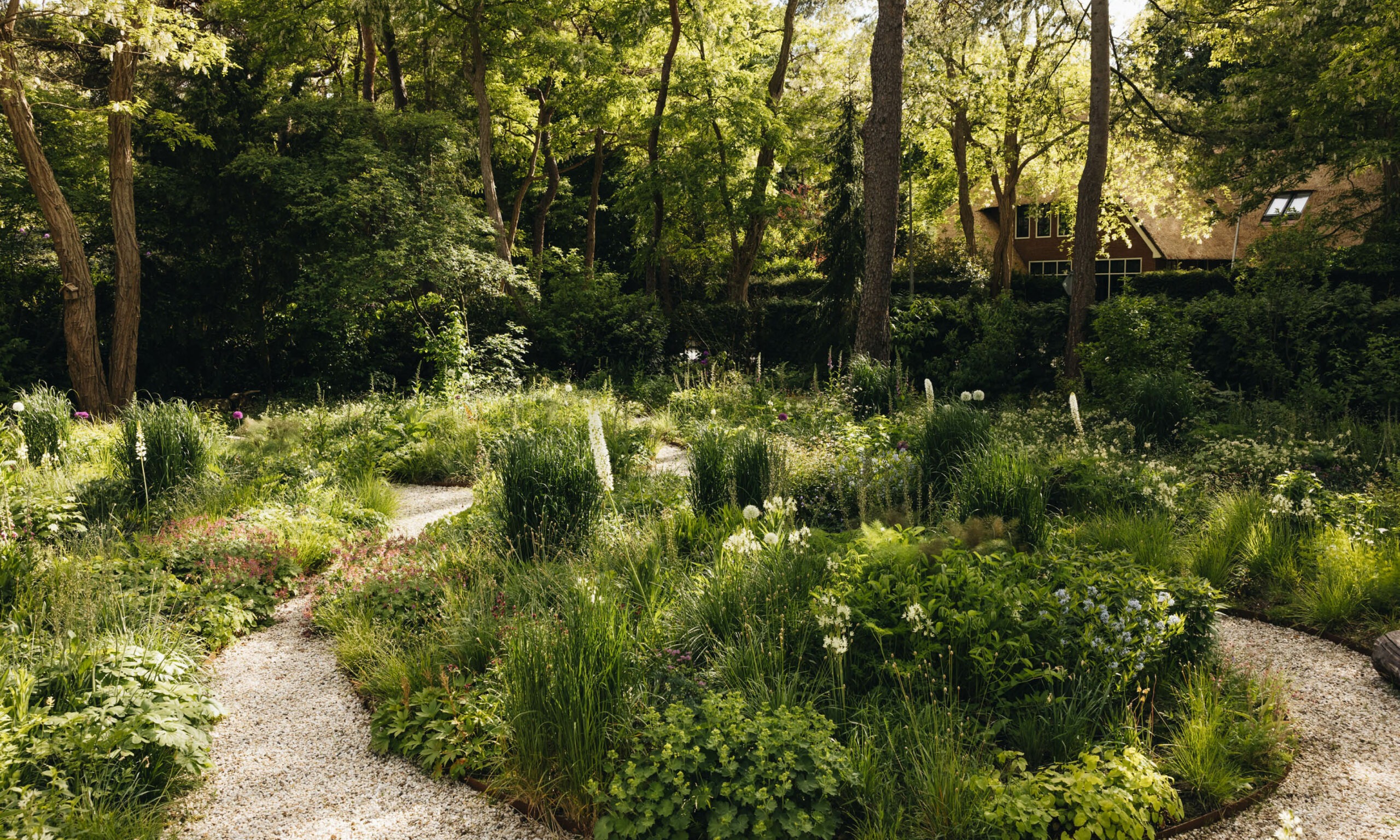 In late 2023, we completed an exciting project in the Netherlands, nestled among numerous nature reserves near Hilversum. Though still in its early stages, this garden is already showcasing its beauty and potential. Designed to blend seamlessly with its natural surroundings, the garden features a woodland edge effect created by the trees within the garden, which also connect the landscape to its broader natural context.