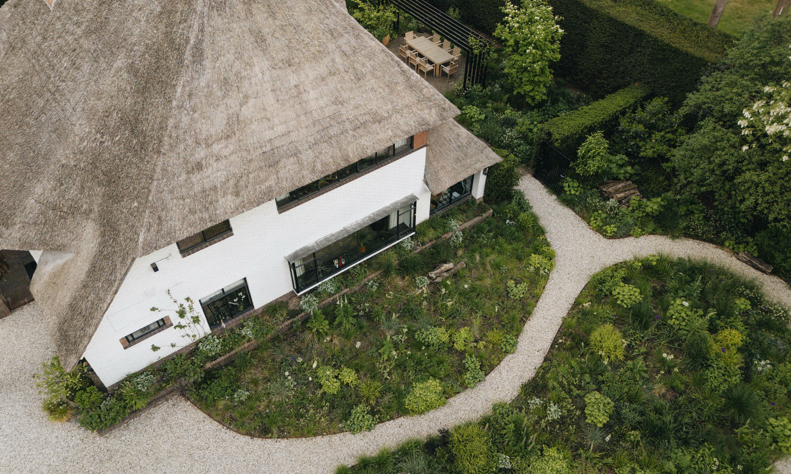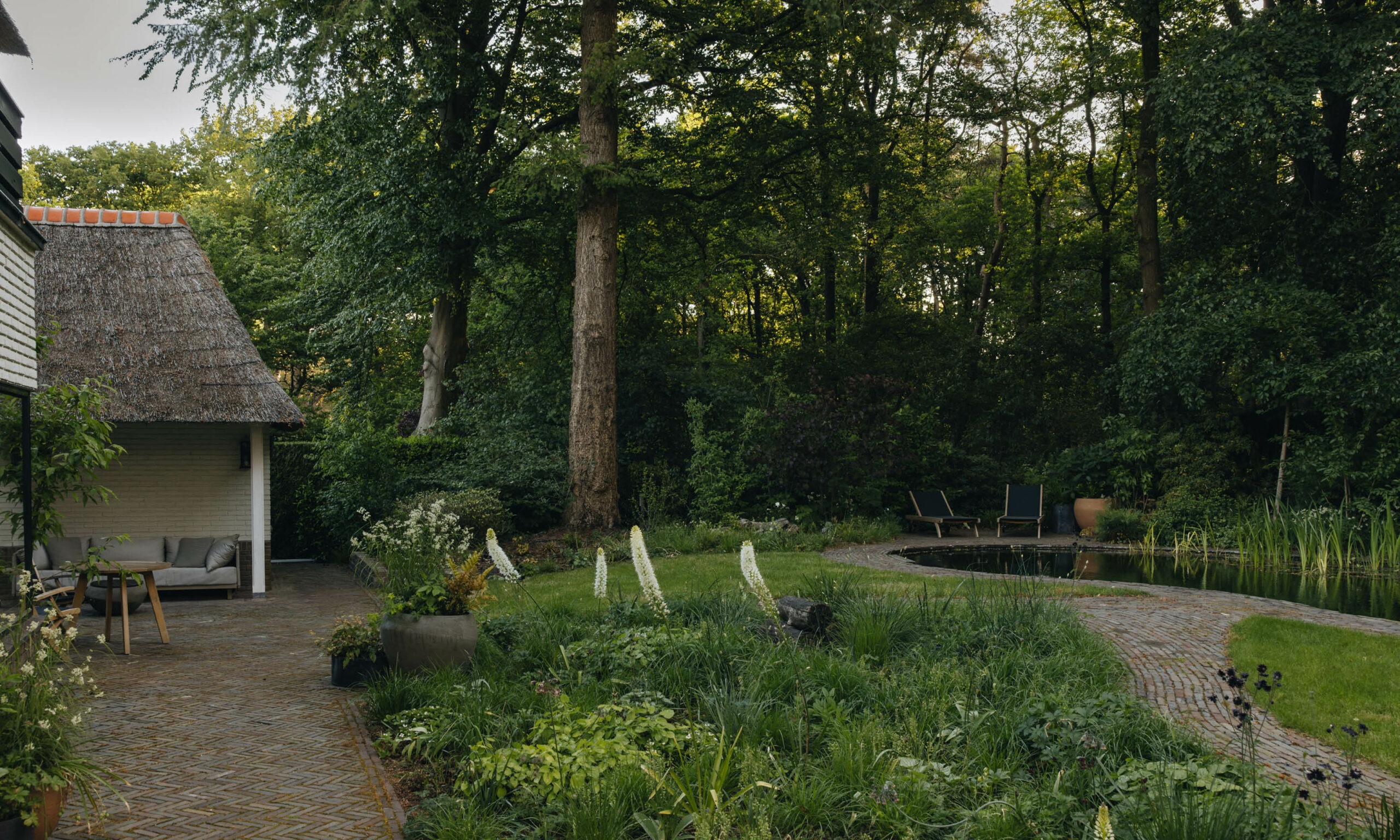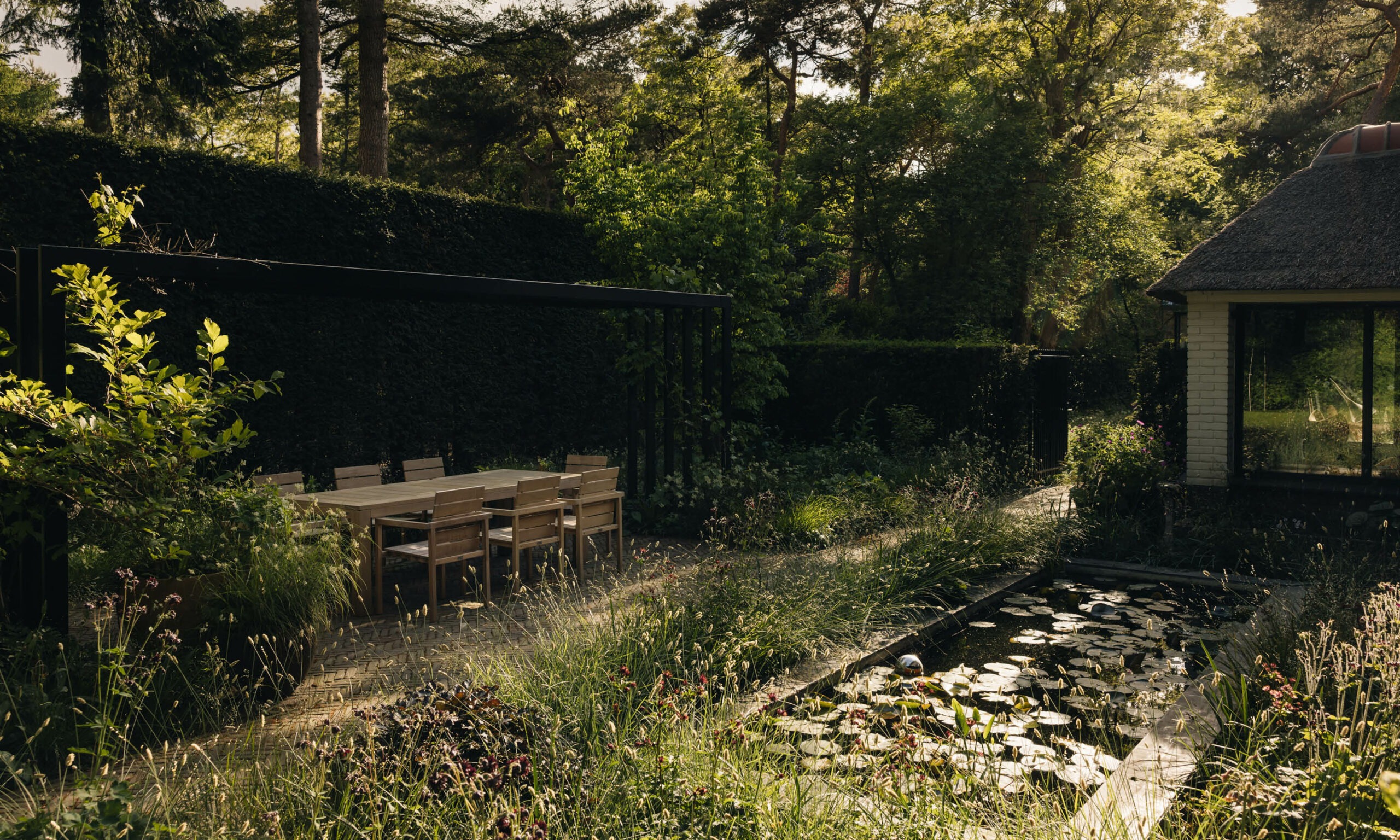 Throughout the property, we strategically positioned beautiful terracotta pots from Atelier Vierkant along the paths and in key functional areas around the house. These pots serve as sculptural elements, adding height and visual interest that enhance the overall design by creating focal points for the eye to rest upon.