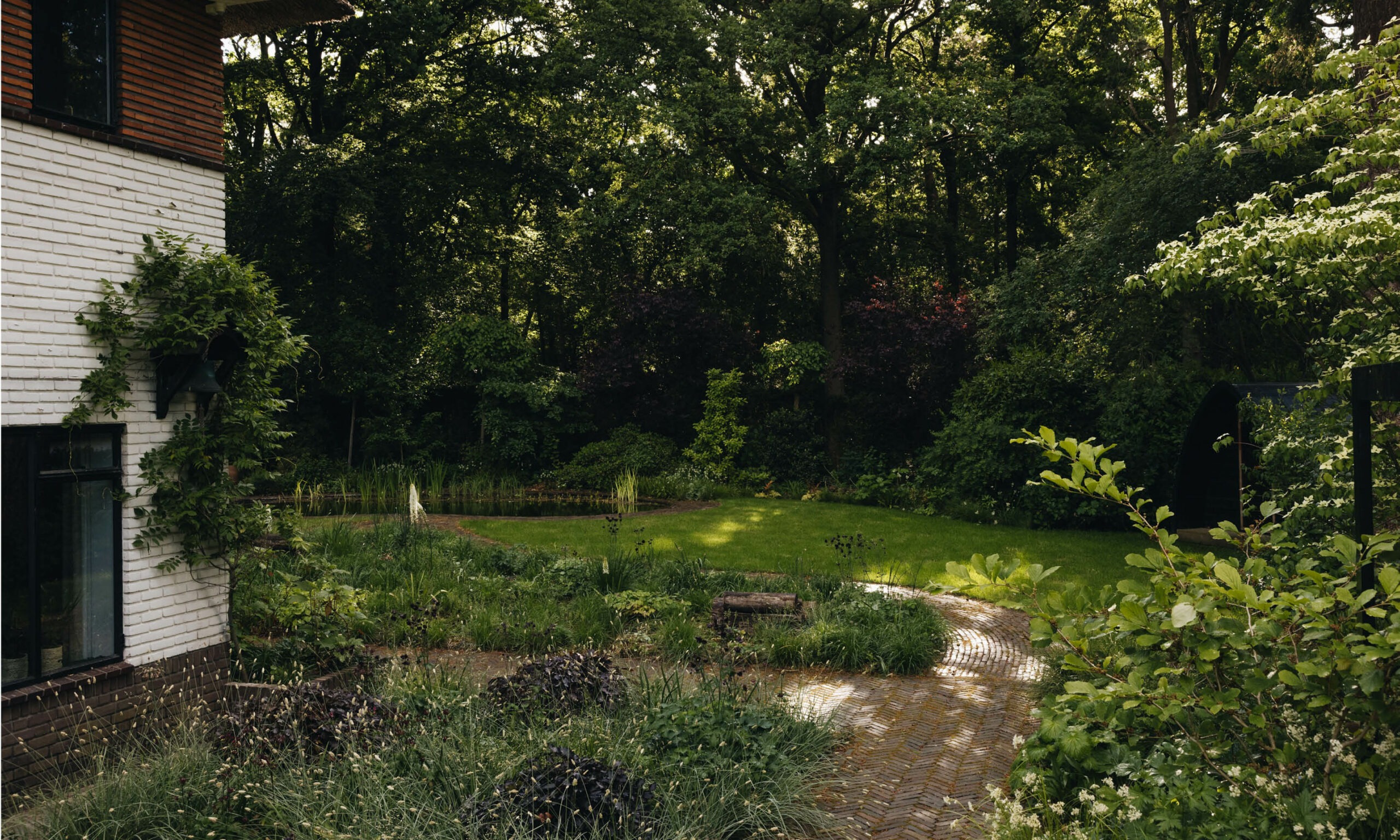 Where there was once just a lawn, we introduced a vibrant landscape featuring planting beds, meandering paths, a natural swimming pool, and a sauna. This design creates a multifunctional and visually appealing space that invites use and enjoyment.